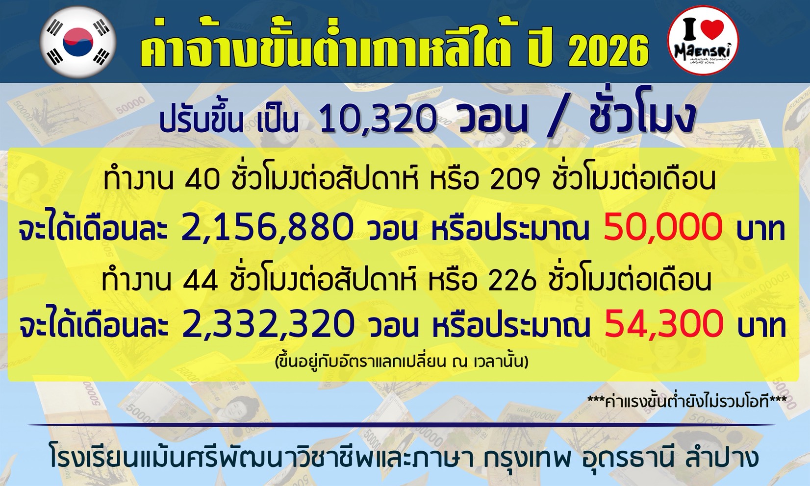 เดินทางไปทำงานเกาหลี โดยเตรียมเงินประกันการเดินทางกลับและเงินติดตัวไปใช้จ่ายในช่วงเดือนแรกของการทำงาน ประมาณ 25,000 บาท
